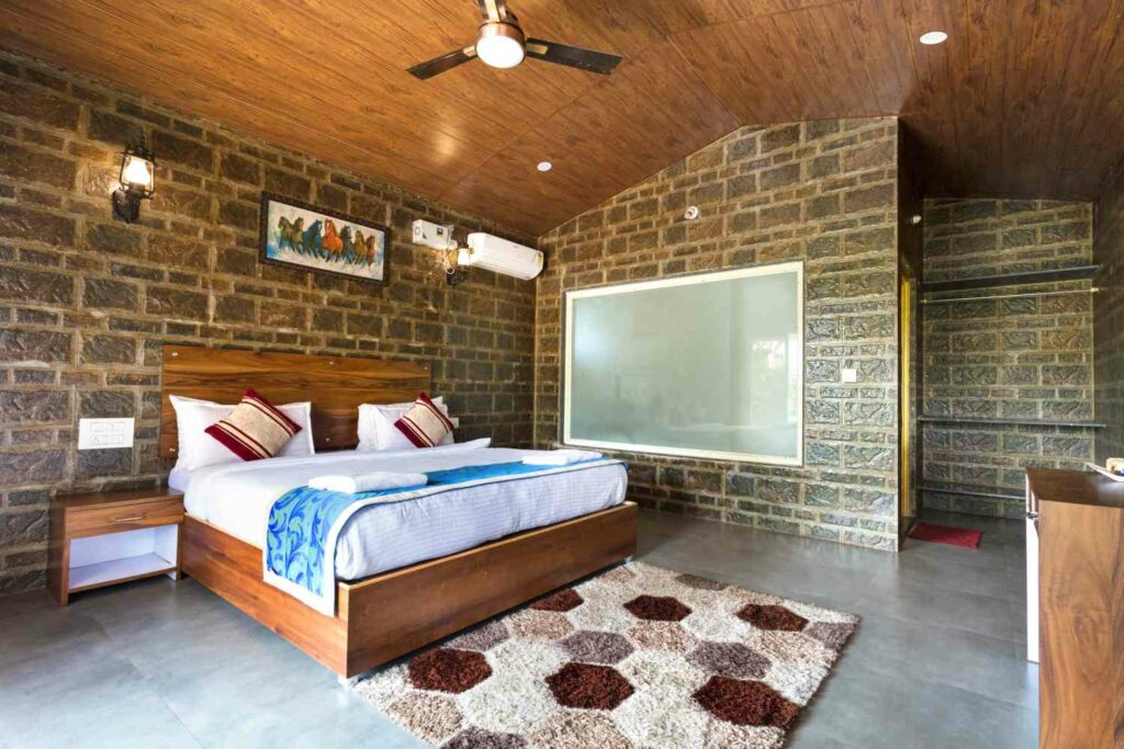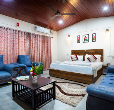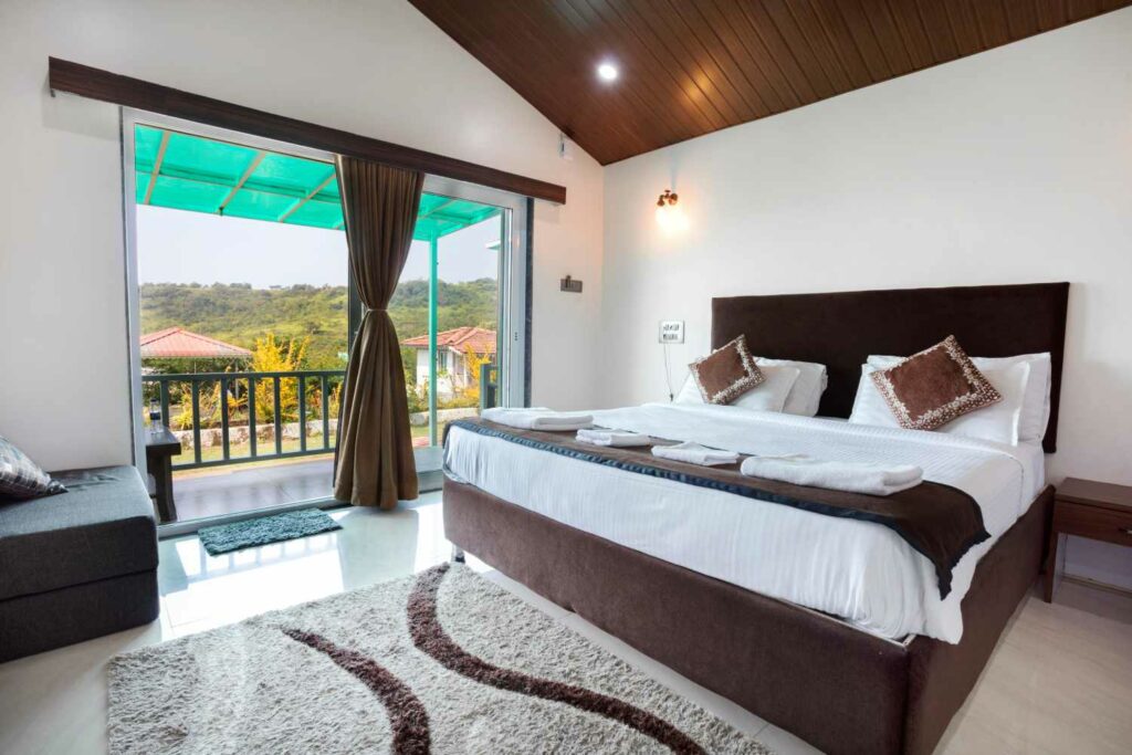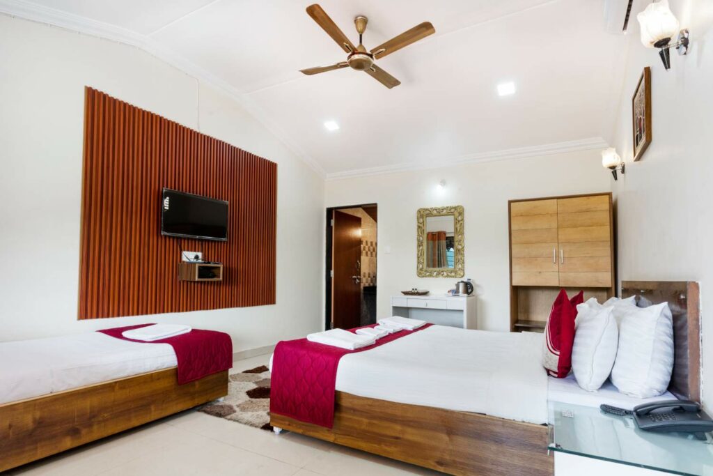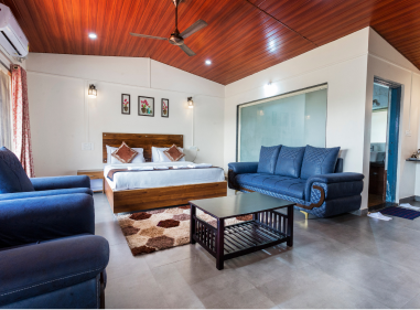 Experience luxury in the Deluxe Room at Dark Forest Retreat, Amboli. This spacious 260-sq. ft. room near Amboli Bus Stand is designed for your utmost comfort. Featuring a stylish wardrobe, it provides ample storage for your belongings. Enjoy a refreshing cup of tea or coffee with the in-room tea and coffee maker, and relax on the private balcony, offering scenic views of Amboli’s natural beauty. Whether you’re unwinding after a day of exploration or preparing for business, the Deluxe Room offers a perfect blend of elegance and convenience, ensuring a memorable stay at Dark Forest Retreat.